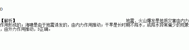 A. 地震 B. 海啸 C. 火山爆发 D. 干旱