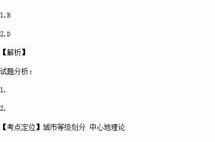 2.下列关于城市等级与服务范围大小的关系的说法,正确的是: