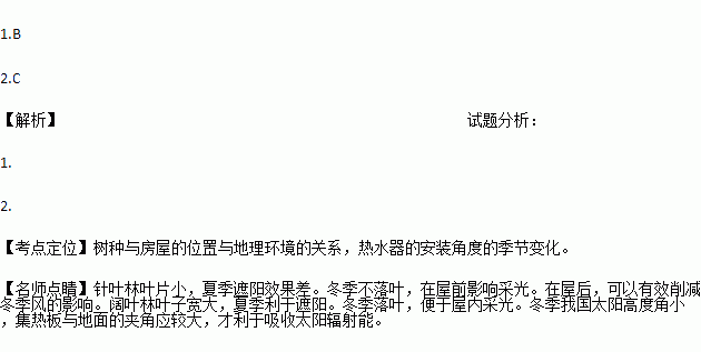 住宅的环境设计特别关注树种的选择与布局,不同树种对光照与风有不同影响。下图为华北某低碳社区( 40°N)住宅景观设计示意图。读图完成下列各题。