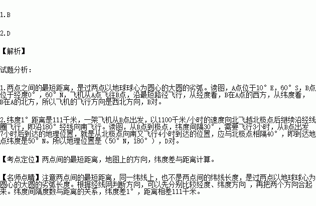 1.一架飞机6月22日从A点飞往B点,沿最短路径飞行,飞机的飞行方向是