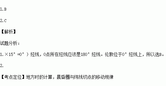 A.开普敦(18°32'E) B.伦敦(经度0°)