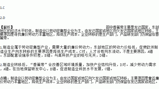 1.促使欧洲制造业生产向东转移的主要原因是