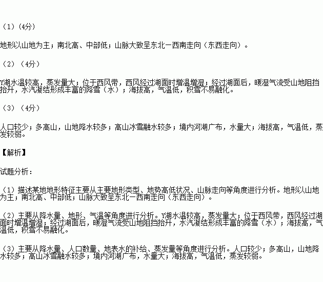(2)分析Y湖东岸积雪时间长的原因。(4分)