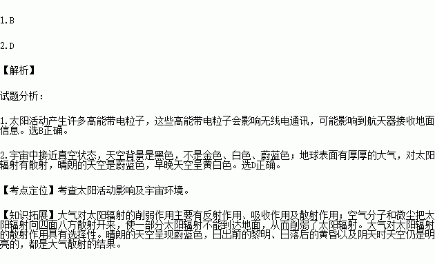 1.最可能干扰航天器与地面指挥系统通信联系的是