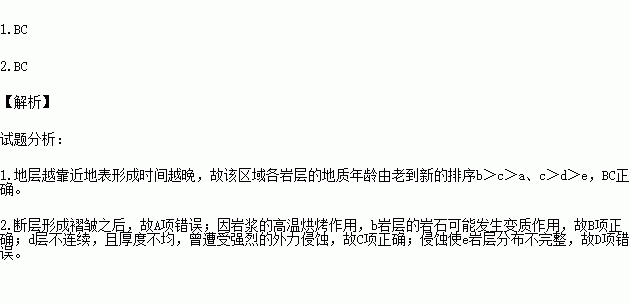 1.该区域各岩层的地质年龄由老到新的排序,正确的有( )