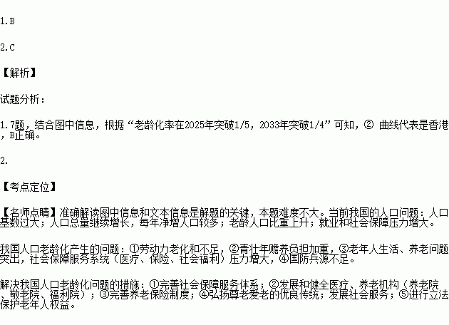 1.图中①②③④四条曲线表示香港2010—2005年老年人口预测的是( )