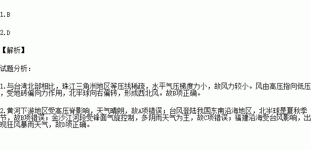 1.与台湾北部相比,珠江三角洲地区( )