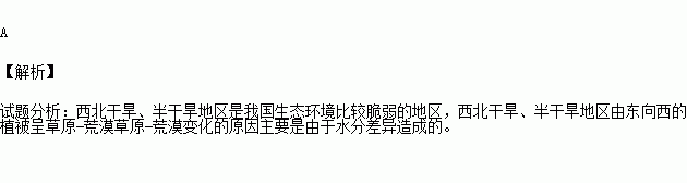 西北干旱半干旱区由东向西,植被由草原―荒漠草原―荒漠变化的原因是( )