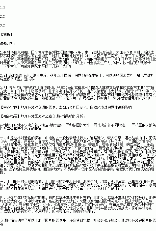 2015年3月20日发生了短暂的日全食,某摄影师在斯瓦尔巴群岛朗伊尔城(78°N)机场拍摄了日全食照片。读下图,完成下列各题。