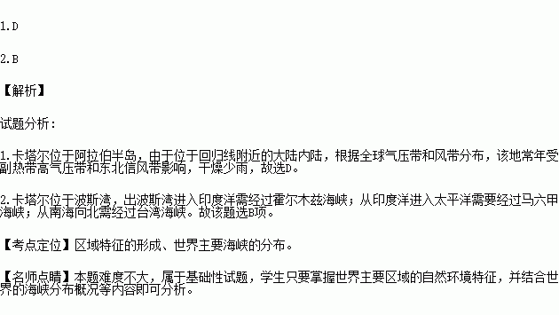 1.卡塔尔气候干旱,年降水量不足150毫米,其主要原因是 ( )