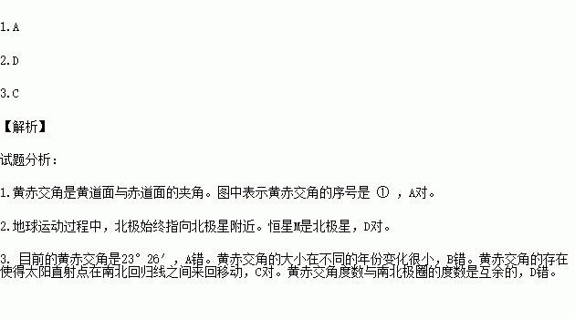 C.黄赤交角的存在使得太阳直射点在南北回归线之间来回移动