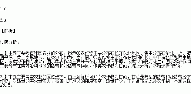 2.我国北方地区不能种植图中农作物④的主要原因是