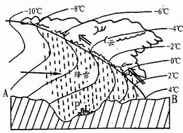 Æä´Î£¬´Ó´¹Ö±·½Ïò¿´£¬ÔÚ¿ÕÖеÈÎÂÃæÍäÇúÃ÷ÏÔ´¦£¬ÆøÎÂÉϸßϵͣ¬²¢ÇÒÆäλÖôÓBÏòAÖð½¥Éý¸ß£¬ËµÃ÷´æÔÚů¿ÕÆøÌ§ÉýµÄÏÖÏó£¬Òò´Ë¿ÉÒÔÍÆ¶ÏÕâÀïÊÇÒ»¸ö·æÃæ¡£