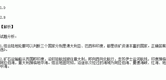 2.¿óʯÔËÊä´¬´Ó±û¹úÑØ½Ï¶Ìº½ÏßÊ»ÍùÒâ´óÀû£¬ÑØÍ¾ÒÀ´Î¾¹ýµÄº£ÓòΪ( )