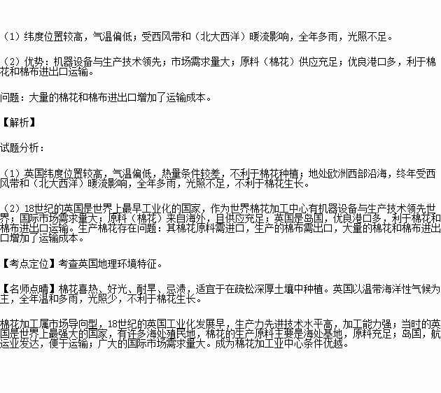ÃÞ»¨´Ó¹ÅÀÏÎÄÃ÷µÄÒ¡ÀºÓ¡¶È×ß³öÀ´£¬¼¸Ç§Äê¼ä£¬ÔÚÊÀ½ç¸÷µØ¿ª»¨½á¹û£¬ÔÚÈËÀàÎÄÃ÷µÄÀúÊ·½ø³ÌÖаçÑÝÁËÖØÒª½ÇÉ«¡£ÃÞ»¨Éú³¤·¢ÓýµÄÊÊÒËζÈΪ25¡«30¡æ£¬¿ª»¨¡¢½áÁåºÍÏËά·¢ÓýÒªÇóÔÚ20¡æÒÔÉÏ£¬¹âÕÕ³ä×ã¡£15ÊÀ¼ÍÓ¢¹ú¿ªÊ¼³öÏÖÃÞ»¨ÖÖÖ²£¬µ«ÆäÃÞ»¨ÖÖÖ²Òµ²¢Î´µÃµ½Ñ¸ËÙ·¢Õ¹¡£ÏÂͼʾÒâÓ¢¹úµØÀíλÖü°²®Ã÷º²¶àÄêÆ½¾ù¸÷ÔÂÆøÎ¡¢½µË®Á¿¡£
