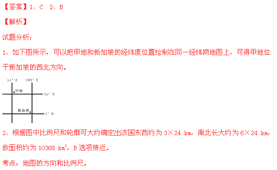 1.图中甲地位于新加坡(1°16′N,103°50′E)的
