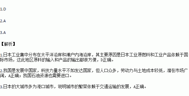 1.日本工业集中分布在太平洋沿岸和濑户内海沿岸,其主要原因是
