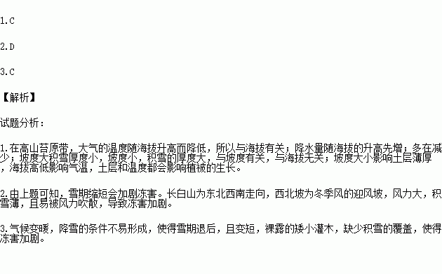 在全球气候变暖的背景下,我国长白上高山苔原带矮小灌木的冻害反而加剧,调查发现,长白山雪期缩短;冻害与坡度密切相关,而与海拔基本无关;西北坡为冻害高发区。据此完成下列小题。