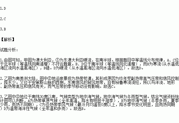 2.与乙图中②地沿岸景观形成,关联不大的地理要素是 ( )