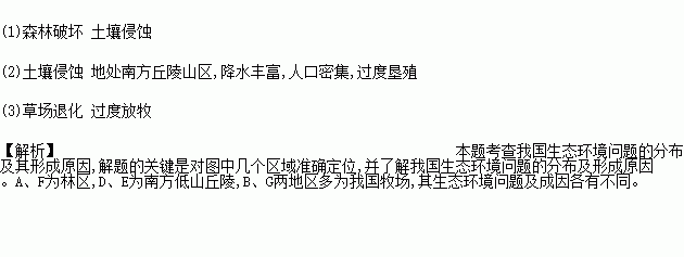 (3)除图中各地区共有的生态环境问题外,B、G两地区共同的生态环境问题是 ,其共同原因是 。