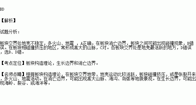 D.各板块交界处是地壳最稳定的地方