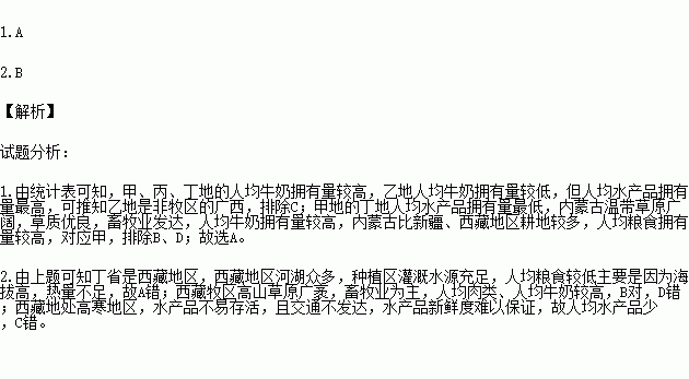 C.水域面积狭小,人均水产品少 D.乳畜业发达,人均牛奶较多