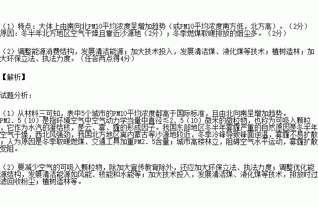 £¨1£©¸ù¾Ý²ÄÁÏÃèÊöÎÒ¹ú¶«²¿µØÇøPM10ƽ¾ùŨ¶ÈµÄ·Ö²¼Ìص㲢·ÖÎö¸ÃÆäÐγÉÔÒò¡££¨6·Ö£©