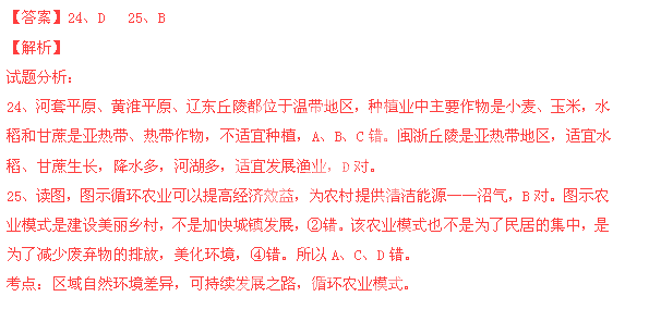循环农业是美丽乡村建设的途径之一。下图示意采用循环农业模式,读图回答24~25题。