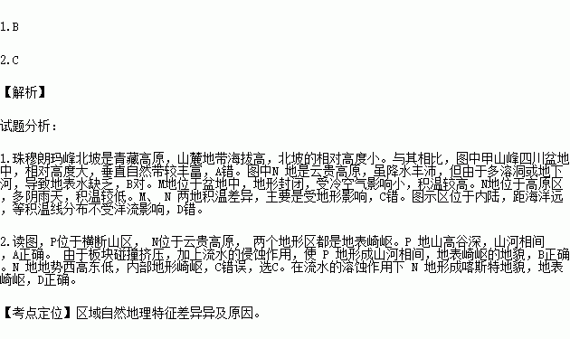 2.P、 N 所在地形区地表崎岖,其叙述错误的是( )