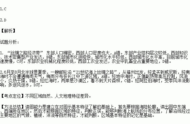 1.关于“丝绸之路经济带”东、西部沿海地区差异的描述,正确的是( )