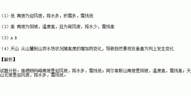 (2)阿尔卑斯山南坡比北坡雪线_____,原因是________________________。