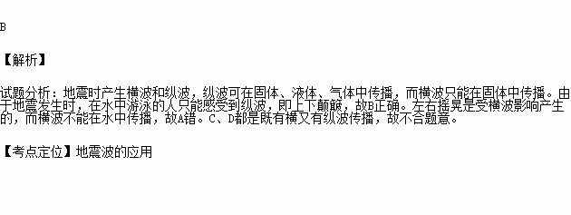 北京时间2013年9月24日19时29分,巴基斯坦发生里氏7.8级地震。地震发生时,当地在水中游泳的人会感到( )