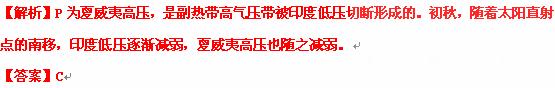 【小题1】若图中P气压中心的势力逐渐减弱,则此时可能是
