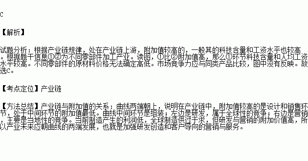 如果①、②为该产品的不同零部件加工产业,那么①比②