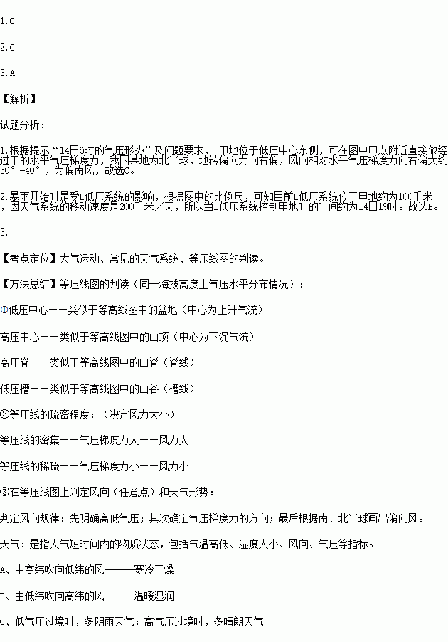 1.图中甲地14日6-9时的风向为( )