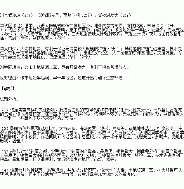 ⑴指出该区域盛产马铃薯的优势气候条件。