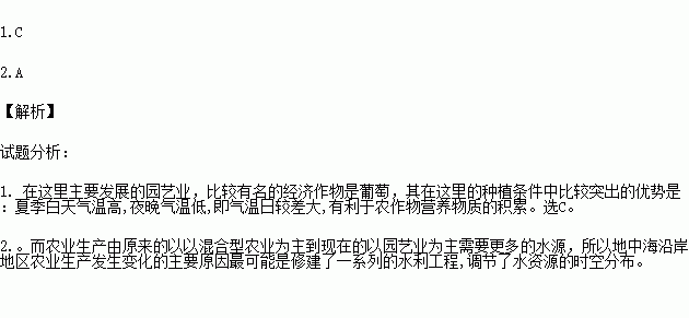 2.图中地中海沿岸地区农业生产由原来的以混合型农业为主到现在的以园艺业为主,其原因主要是