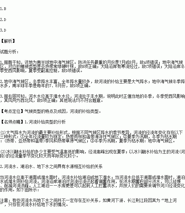 A.冰雪融水 冬季 B.大气降水 1、2月