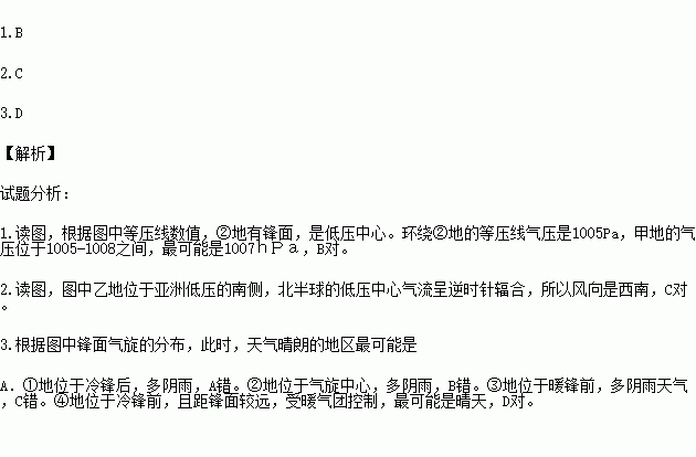 1.甲地的气压最可能是( )