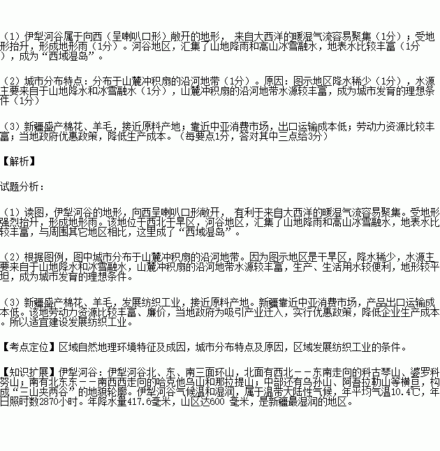 (1)分析伊犁河谷地成为“西域湿岛”的原因。(3分)