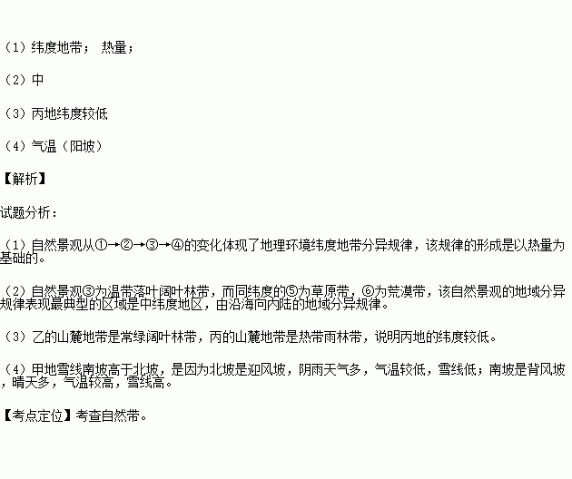 £¨1£©×ÔÈ»¾°¹Û´Ó¢Ù¡ú¢Ú¡ú¢Û¡ú¢ÜµÄ±ä»¯ÌåÏÖÁ˵ØÀí»·¾³ µÄ·ÖÒì¹æÂÉ£¬¸Ã¹æÂɵÄÐγÉÊÇÒÔ Îª»ù´¡µÄ¡£