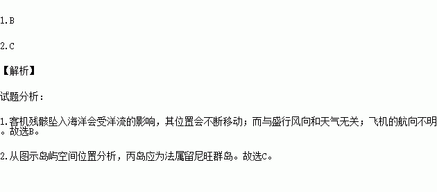 2.图示甲、乙、丙、丁四地,表示法属留尼旺群岛的是
