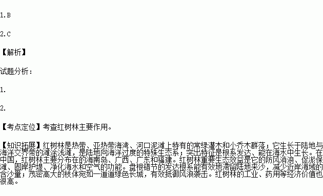 2.¹ØÓÚºìÊ÷ÁÖÖ÷ÒªÉú̬¹¦ÄܵÄÐðÊöÕýÈ·µÄÊÇ