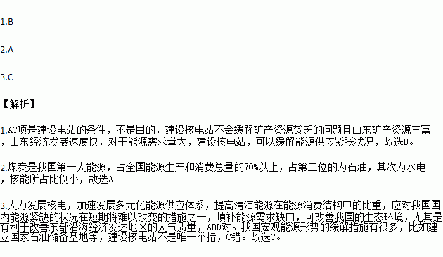 1.在山东东部沿海建核电站的主要目的是 ( )