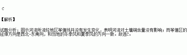 图为我国北方某冶炼厂周边土壤中污染物铜含量等值线图。读图,回答下题。
