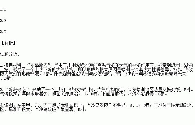 ¡°À䵺ЧӦ¡±Ö¸µØÇòÉϸɺµµØÇøµÄÂÌÖÞ¡¢ºþ²´£¬ÆäÏļ¾ÖçÒ¹ÆøÎ±ȸ½½üɳĮ¡¢¸ê±ÚµÍ£¬Î²î×î¸ß¿É´ï30¡æ×óÓÒ£¬ÕâÊÇÓÉÓÚÖÜΧ¸ê±ÚɳĮµÄ¸ßÎÂÆøÁ÷ÔÚ´óÆøµÄÆ½Á÷×÷ÓÃÏ£¬±»´øµ½ÂÌÖÞ¡¢ºþ²´ÉϿգ¬ÐγÉÁËÒ»¸öÉÏÈÈÏÂÀäµÄ´óÆø½á¹¹£¬ÐγÉÒ»ÖÖÎÂÈóÁ¹Ë¬µÄÐ¡Æøºò£¬¾Ý´ËÍê³ÉÏÂÁи÷Ìâ¡£
