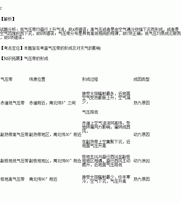 B.高气压带均是由空气遇冷收缩下沉而形成