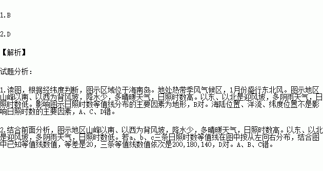 2.a、b、c三条日照时数等值线分布的主要因素分别为( )