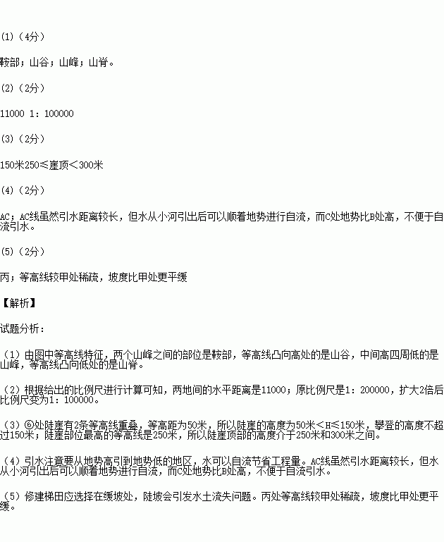 (5)若在甲、丙二处中选其中一处修梯田,以 处最好。原因是___________________________。(2分)