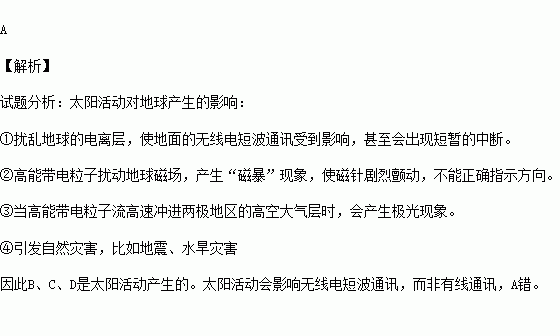 C.出现美丽的极光 D.旱涝灾害